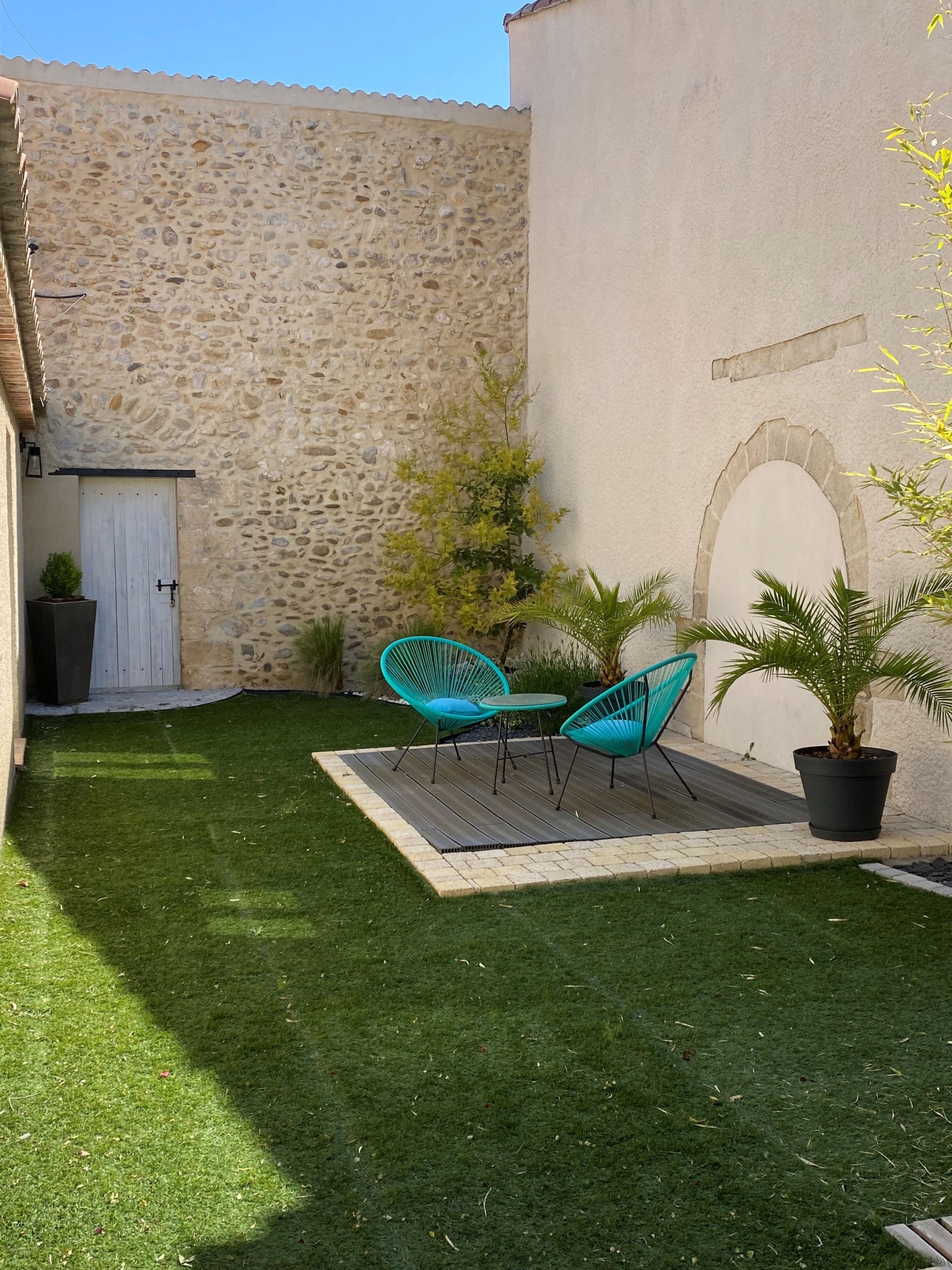 À l’abri des regards, cette cour intime devient un véritable prolongement de la chambre : transats pour se détendre, espace repas en plein air, étendage discret… Un petit refuge extérieur où savourer la douceur provençale en toute tranquillité.